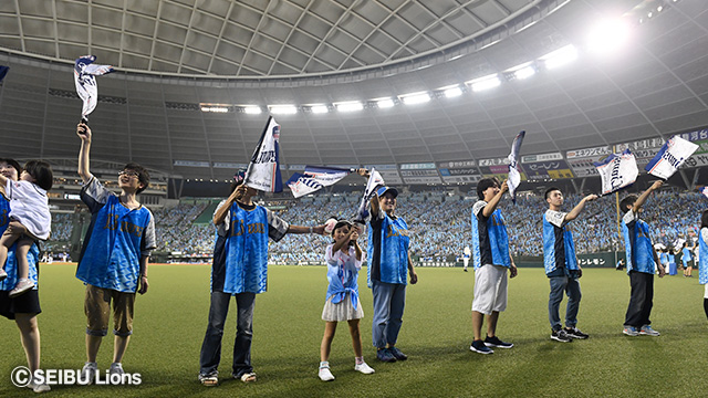 ライオンズのラッキーセブン前に、フラッグを振って、スタンドを盛り上げます!