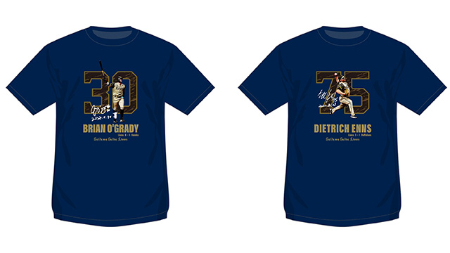 活躍したヒーロー選手の写真とともに活躍を表現した一言や当日のサインがデザインされたフェイスタオルをはじめ、選手のプレー写真と背番号がデザインされたTシャツやキーホルダーなど計4アイテムをご用意。