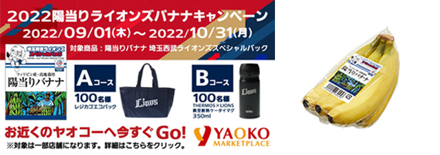 スーパーマーケットヤオコーでは、対象店舗で「2022陽当たりライオンズバナナキャンペーン」を実施しております!