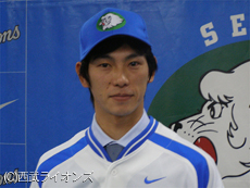 「ライオンズに大変感謝しています。プロ7年の経験を活かして、ライオンズを強くする為にやれることをやっていきたいと思います。若い選手と交流していきたいです。目標はチームの優勝です。貢献できればと思っています。自分のいい所をアピールして、1軍で試合に出られるように頑張ります。アピールポイントは肩と足です。縁があって地元のチームに入ることができたのですごくうれしいです」