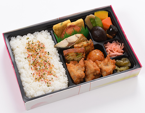 中村選手プロデュース弁当「剛也の満腹弁当」は、出身地でもある大阪の名物グルメから「たこ焼き」「とん平焼き」「ねぎ焼き」を、本人の好物でもあるお肉から「から揚げ」、お魚から「鯖の塩焼き」など、おかずが盛りだくさんとなっています。さらに280gもあるご飯はボリューム満点でお腹いっぱいになること間違いなし!