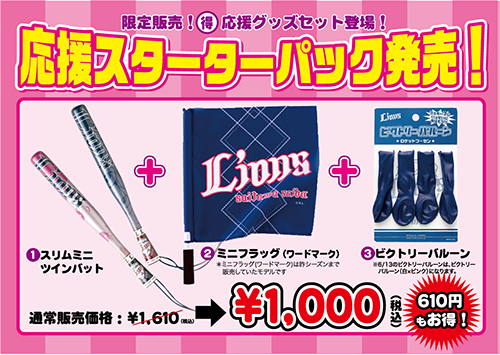 | プレゼント内容 | 女性のお客さま限定でキャンペーン対象日に西武プリンスドームでライオンズグッズ3,000円以上(税込)購入ごとに「ビクトリーバルーン」を1セットプレゼントします。 |