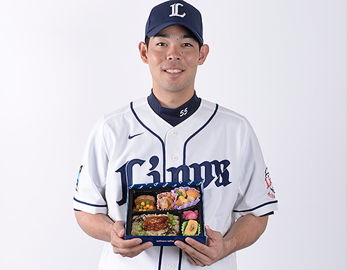 MY PAGE選手こだわりの一品!大人気の選手プロデュースグルメに、秋山選手プロデュース弁当「秋山ガンバレ!弁当」が登場! 6月12日(金)対東京ヤクルトスワローズ戦より販売いたします。