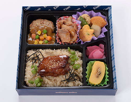 秋山選手プロデュース弁当「秋山ガンバレ!弁当」は、秋山選手の好物である「豚の生姜焼き」「ハンバーグ」「照焼きチキン」が入っているほか、う巻きに加え、「秋山」にちなんだ「秋」と「山」を連想させる松茸薩摩揚なども入った盛りだくさんのお弁当となっております。