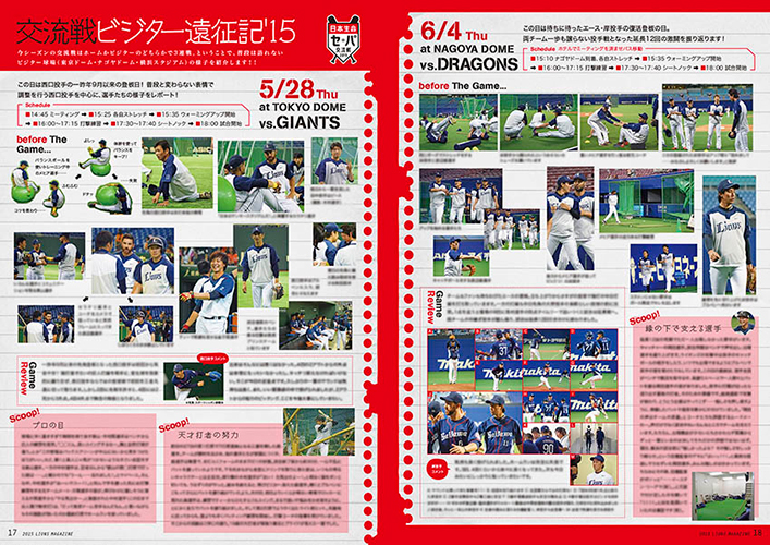 そのほか、チーム密着企画では交流戦のビジター遠征や移動に密着! FANBOOK蔵出し写真集では岸孝之×炭谷銀仁朗の対談企画での未公開写真や面白エピソードなどを大公開しています。