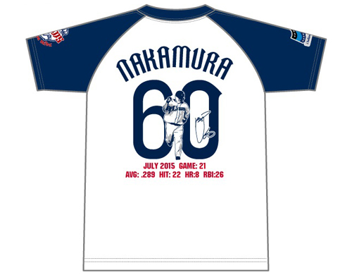 中村選手は7月度、4番打者としてチームの全21試合に出場し本塁打(8)、打点(26)がリーグトップの好成績を残しました。