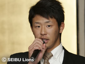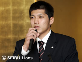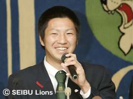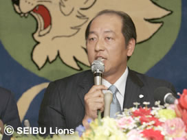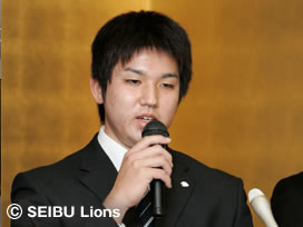 | 「今年のドラフトは、ライオンズにとって100点に近いドラフトだったと思います。 これからこの若い新入団の選手たちも必ずと言っていいほどライオンズの戦力になってくれると信じています。この中の選手が、1人でも多く一流プレイヤーになれるように我々も現場としてサポート していきたいと思います。 来年2009年も厳しいシーズンになると思いますが、皆の力を借りながら目一杯日本一を目指して頑張っていきましょう。よろしくお願いします。」 |  |