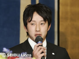 | 【コメント】 「昔からの夢が叶った実感がやっと沸いてきましたが、これからが勝負だと思うので頑張りたいと思います。 1軍で一年間通して試合に出て、チームを優勝に導けるようなキャッチャーになりたいです。」 |