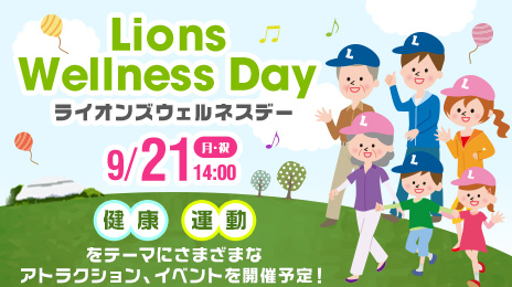 9月21日(月・祝)の敬老の日は、シニアの方をはじめとする家族の健康を願い、ファンの皆さまに笑顔と元気をお届けする1日、「ライオンズウェルネスデー」を開催します!