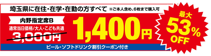 | 席種・価格 | 内野指定席B 1,400円 (前売・当日/大人・こども共通) |