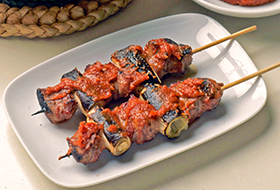 豚のカシラ肉をじっくり焼き、辛味の効いたみそダレをつけて食べるのが、東松山の「やきとり」です。