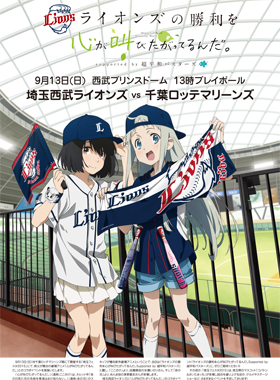 秩父が舞台の劇場アニメ「心が叫びたがってるんだ。」とのコラボレーション企画『ライオンズの勝利を心が叫びたがってるんだ。Supported by 超平和バスターズ』の開催を記念しまして、当日ご来場のお客さまに「ここさけ」情報が満載の「埼玉新聞特別号」をプレゼントいたします。