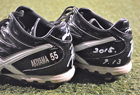 公式Facebookをご覧の方を対象に「これからも応援していただきたい」ということで、使用済みのスパイクシューズを、秋山選手の直筆サイン入り・200安打を達成した日付入りで、1名さまにプレゼントいたします!!!