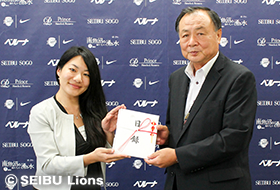 9月28日(月)、(株)西武ライオンズの代表取締役・居郷肇からTFT事務局長の安東迪子さまへ寄付金を贈呈いたしました。