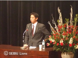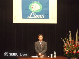 自分の講演で少しでも一人でも多くの方々へお力になれればと思います。また、現役生活14年間暖かい声援ありがとうございました。これからもライオンズのために頑張ってまいります。今後もご声援よろしくお願いいたします。」