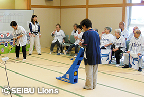 「リアル野球盤」というレクリエーションゲームを通じて、地域の高齢者の皆さまと交流を図る「リアル野球盤で健康長寿!」プロジェクト。シニア層が抱える運動不足やコミュニケーション不足の解消に寄与する活動として施設を訪問しています。