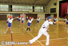 9月25日(金)所沢市立北秋津小学校にライオンズアカデミー平尾博嗣コーチ、星野智樹コーチが訪問。5年生88名を対象に「わかりやすく!たのしく!」をモットーに、投げ方の指導を行いました。