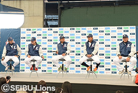 ライオンズにまつわる様々な問題を3つのクイズ形式で出題し、ファンがお気に入りの選手と一緒に、知力と体力を競い合いながら答えていく勝ち残り戦のクイズ大会です。クイズ大会の参加者はファンクラブ会員を対象とした事前抽選制となりますが、スタンドからであればどなたでもご観覧いただけます。我こそは!という方のエントリーをお待ちしております。