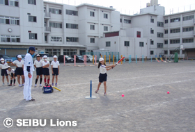 小学生を対象に、キャッチボール体験などを通じて投てき能力、体力向上、野球の楽しさを体験していただく「ベースボールチャレンジ」プロジェクト。10月は3校の小学校にライオンズアカデミーコーチが訪問し、「わかりやすく」、「たのしく!」をモットーに「投げ方・打ち方」を教えました。