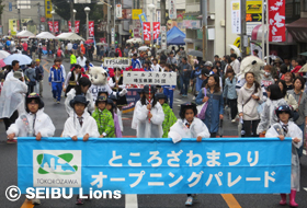 10月11日(日)ところざわまつりのオープニングパレードに市内の園児、小中学生を含む参加団体の皆さまと一緒に「レオ」と「ライナ」が参加しました