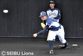 3投手は普段から非常に仲が良いのですが、小石投手と岡本洋投手の2人は本当に切っても切れない仲で、この秋季キャンプではほぼ一緒にいます。