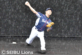 サブグラウンドにあるブルペンでは、藤原投手・小石投手・岡本洋投手の3人がピッチング練習。