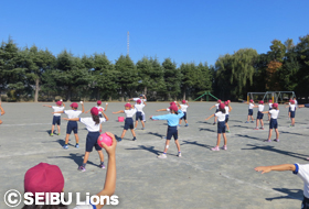 所沢市、入間市の小学校にライオンズアカデミー平尾博嗣コーチ、星野智樹コーチが訪問し「わかりやすく」、「たのしく!」をモットーに「投げ方・打ち方」を教えました。