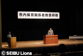 11月27日(金)入間市にて開催された「入間市保育関係者教養研修」に、ライオンズOBの石井丈裕が講師役として参加。市内の保育関係者約270名を相手に「ひとつのことを極める」「ずっと好きでいられる秘訣」などを講演。プロ野球選手時代の話や指導者としての経験を、参加者へ熱く語りかけていました。
