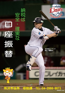 秋山選手を起用した「所沢市収税課ポスター」が完成いたしました。