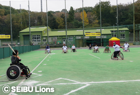 11月は、ファンや地域の皆さまに1年間の感謝を込めて「LIONS THANKS FESTA 2015」を実施!ライオンズが2013年より支援している車椅子ソフトボールの体験エリアや、プロ野球選手会が推奨している「キャッチボールクラシック」の実施、昨年に引き続き三角ベースボール体験エリア、地域活動ブースの出店を行いました。