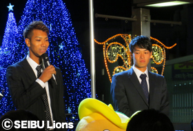 クリスマスを約1ヵ月後に控えた11月28日(土)「所沢駅西口 イルミライティングファンタジア2015-2016」に誠投手と金子一輝選手が、さらに「2015ファルマン スターライト ファンタジア」に福倉健太郎投手と外崎修汰選手がそれぞれ参加!
