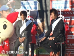 先日、平野将光投手・松坂健太選手が西武新宿線・本川越駅前ぺぺ広場にて開催された、“クリスマス献血キャンペーン2008”に参加しました。