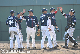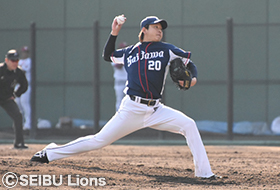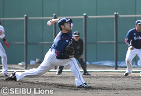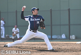 6回からは2番手 増田、7・8回は3番手 野上、9回は4番手 岩尾がいずれも無失点で切り抜け、序盤から打線がつながり、15安打8得点を挙げ快勝となりました。投げては菊池、増田、野上、岩尾のリレーで1失点に抑えました。