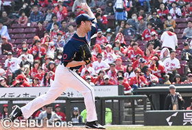 マツダスタジアムで迎える広島とのオープン戦。森とのバッテリーで先発マウンドに臨んだバンヘッケンは、1回、2回と走者を出すものの要所を締めて無失点とします。続く3回に1アウト満塁のピンチを迎えましたが、ここは犠牲フライだけの1失点に。4回もヒットやボークなどで再び満塁としたものの、粘りのピッチングでしのぎ追加点を許しません。