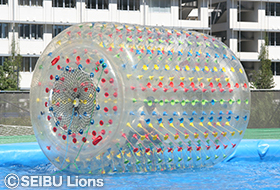 ビニール製の巨大風船に入って、水上を転がるアトラクションです。