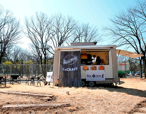開放感あふれる芝生エリアのキッチンカーでは、ロッキー山脈をイメージした窯焼きピザをその場で焼き上げ提供するなど、クオリティにこだわりました。