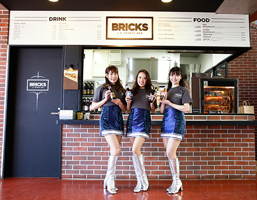 『L’s SPORTS BAR BRICKS(ブリックス)』は、アメリカのボールパークの周辺にある名物スポーツバーのイメージを再現しました。オーナーお気に入りのビールと名物フードをそろえ、壁には臨場感あふれる大型モニターと好きな選手のユニフォームを飾る。そんなチーム愛にあふれた空間には自然と共通の仲間が集い語り合う。そんな思いを込めたBRICKSでは「クアーズライト」をはじめ、三種のシトラスフルーツをトッピングした「クアーズライト・シトラス」のほか、アメリカンボトルビールを中心とした世界のビールを豊富に取り揃えます。