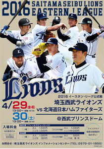 ライオンズファームチームは4月29日(金・祝)・30日(土)、西武プリンスドームにて今シーズン初のイースタン・リーグ公式戦を開催! フィールドビューシート(指定席)の発売も行います。
