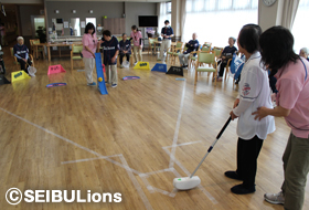 「リアル野球盤」というレクリエーションゲームを通じて、地域の高齢者の皆さまと交流を図る「リアル野球盤で健康長寿!」プロジェクト。シニア層が抱える運動不足やコミュニケーション不足の解消に寄与する活動として施設を訪問しています。