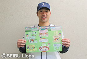 ファン・選手会・球団が三位一体となり、明るい社会・未来をつくっていくこどもたちが、安心して夢を持って生活できる環境づくりをサポートしていく、ライオンズこども基金。選手サイン入りユニフォームの「チャリティーオークション」や、「チャリティーグッズ」の販売収益など、ファンの皆さまのご協力をいただき、ライオンズ「食育ランチョンマット」を製作! 埼玉県内の50市町村の小学校新1年生・6万人に寄付いたしました。