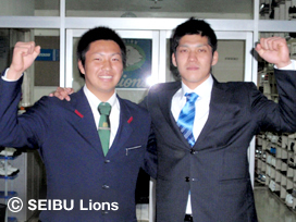 | 宮田投手(左)・浅村選手(右) | 中崎投手(左)・岳野選手(右) |