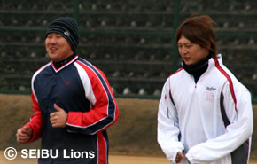 厳しい寒さとなった本日の「自主トレ始め」でしたが、中村選手、栗山選手はしっかりと身体を動かし、また涌井投手は古巣を訪れた先輩のレッドソックス・松坂投手と共に、元気に汗を流していました。