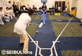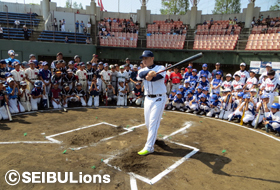 ライオンズアカデミー岡村隆則コーチ、石井丈裕コーチ、平尾博嗣コーチが講師を務め、キャッチボールの重要性、守備・打撃の基本の大切さを繰返しレクチャーするなど技術指導を行いました。
