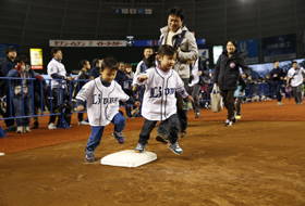 試合後の「AFTER THE GAME」では、25日(土)がレオ・ライナ、コバトン、さいたまっち、そしてマーくん・リーンちゃんとハイタッチができるベースランニング体験を実施!