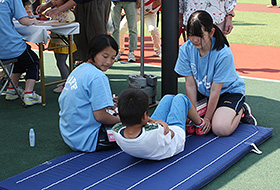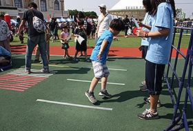 西武プリンスドーム ドーム前広場では、親子で体力測定できるイベントブースやスポンサーブースが多数出店します! ぜひ親子で体を動かして遊んでみよう!
