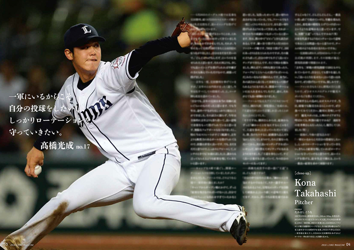 7月号の特集選手にはここまで3勝2完投と昨シーズンより成長した姿を見せ、将来のライオンズを担う投手として期待がかかる高橋光成投手が登場! 開幕ローテーション入りを逃し、ファームでじっくりと自身を見つめ直す間に掴んだ浮上のきっかけとは。24日の地元・群馬開催への想いも語ってくれました。