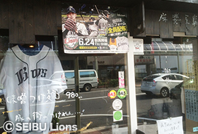 上毛新聞敷島球場に程近い群馬県前橋市の繁華街では、地元前橋育英高校出身の髙橋光成投手が前面に出た開催告知ポスターを店舗に掲出し、試合当日に来場者全員(※)に配布されるホームユニフォームを着用するなどライオンズの応援モード一色に染まっています。