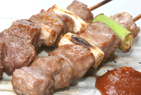 埼玉県東松山名物のみそだれやきとり。名物のかしら串、埼玉県産ブランド豚「彩の国黒豚」のやきトン串をひびきの「秘伝みそだれ」を付けてご賞味いただけます。