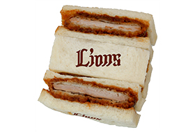 MY PAGE西武プリンスドームの大人気商品、とんかつ「さぼてん」のやわらかなヒレかつと特製ソースが自慢の「ライオンズオフィシャル勝サンド」。