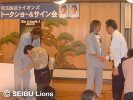 昨シーズンを振り返って様々なシーンでの感想や、地元・大宮東高等学校(平尾選手)、埼玉栄高等学校(大島選手)時代に過ごした思い出のエピソードなどを中心にトークショーが行われました。その他にもサイン会と握手会が行われ、小さいお子さまからご年配の方々までたくさんのご来場者の皆さまと一緒に、楽しいひと時を過ごしました。